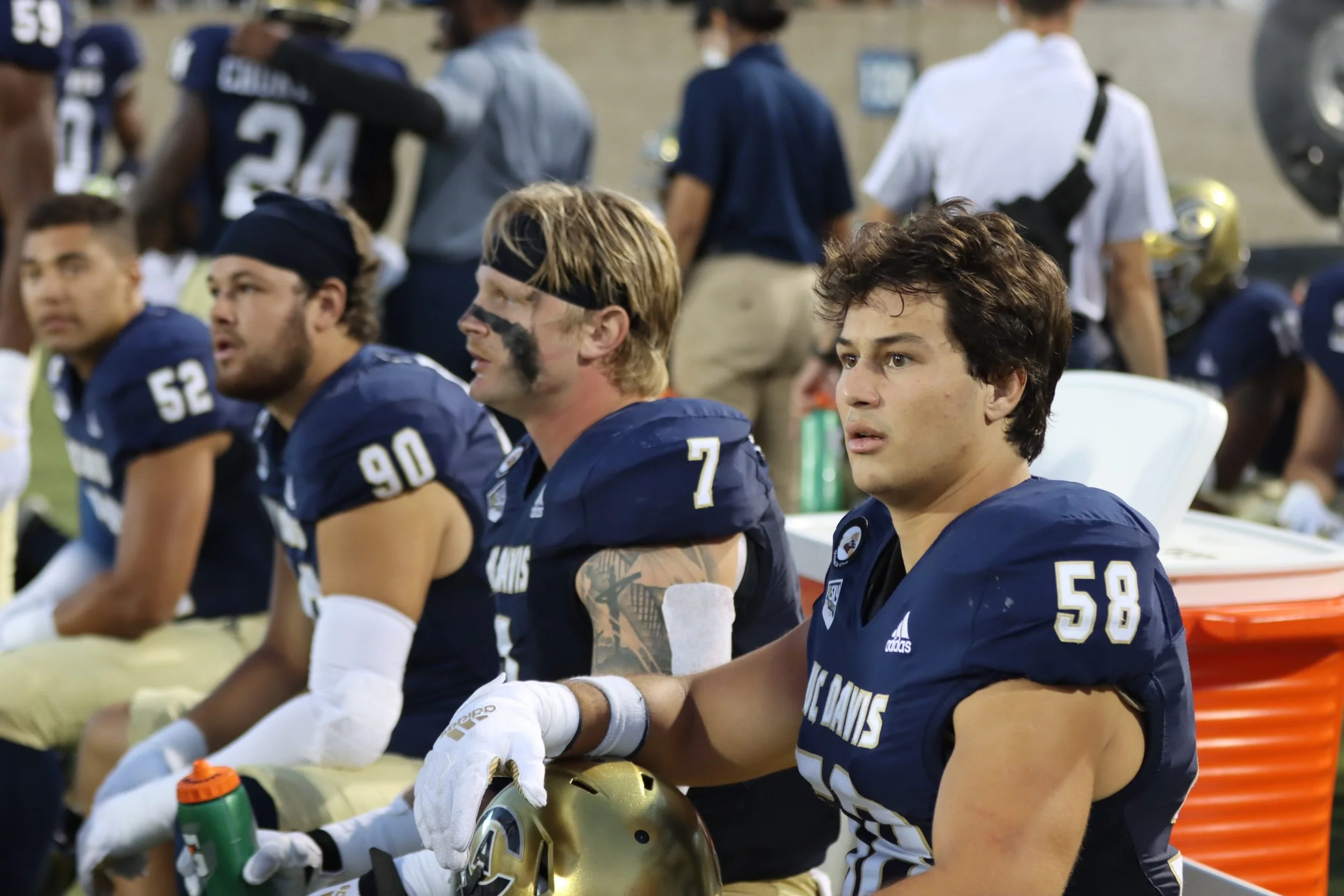 Going into my junior year at Davis I was finally getting some good playing time and making some impactful plays. When I thought everything was going well my season came to an end as I tore a tendon in my foot. Probably one of the hardest things I’ve had to go through. I could not walk for about a month and a half and was riding a scooter to get to class. I wore a boot all the time, slept like shit, and endured a challenging surgery. I was told there was a chance I would never be able to step on the field again. Fortunately, the surgery went well and I took my rehab day by day, exercise by exercise, rep by rep. To be honest rehabilitating my foot sucked. The days were long; I would be at the facility for 5-6 hours, I would be tired and sweaty, and I felt like no one noticed or cared. I knew I just had to show up everyday and be consistent and eventually I would be cleared. I started stacking the little wins in my head. I was finally able to walk, I was finally able to jump, I was finally able to jog, I was finally able to run, I was finally able to squat, until eventually I was finally able to play football with no pain. It was a 5 and a half month journey and I still find myself with the desiring urge to be better than yesterday, to chase my dreams, to not give up, to take over the challenges life throws at me.